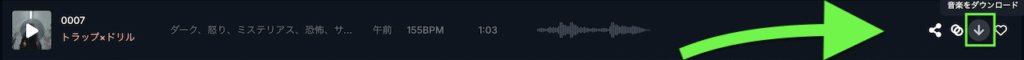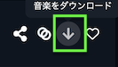 作成した楽曲の右側に「」マークでダウンロードボタンがあります。