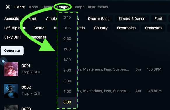現在、SOUNDRAWでの1曲の最大長さは5分です。