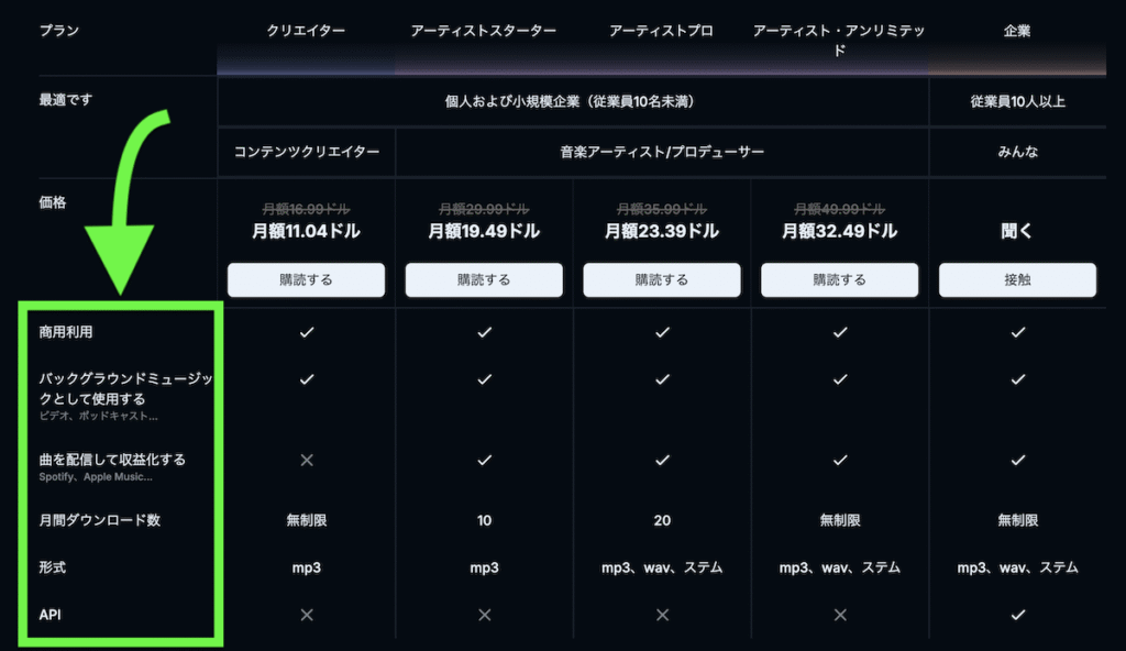 各有料プランにはクレジット数による区分け」がないことが分かります。